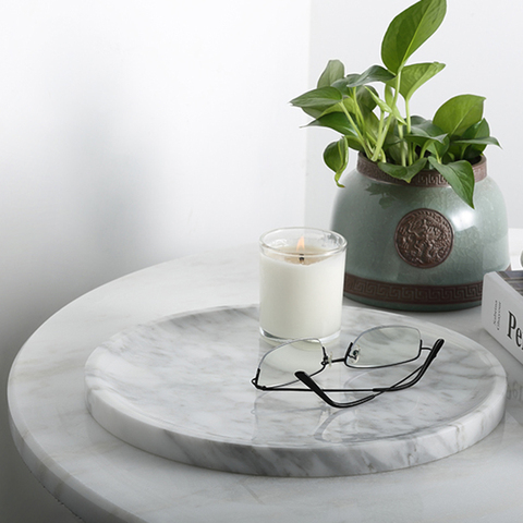 صينية تخزين للحمام من الرخام بشكل دائري صينية تخزين للفنادق من الرخام للوجبات جميلة صينية تقديم الطعام والقهوة والإفطار